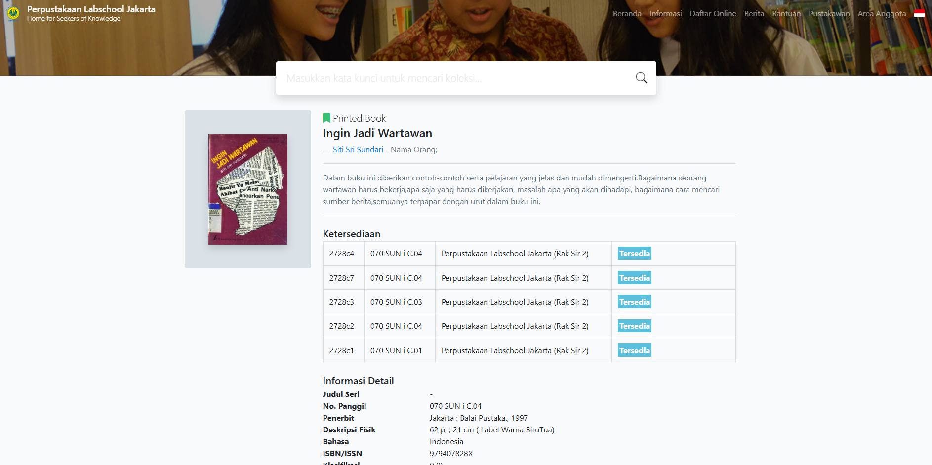 Sebagai bagian dari upaya penguatan literasi jurnalistik, Perpustakaan Labschool Jakarta juga menghadirkan rekomendasi bacaan bertema pers. Salah satunya adalah buku Ingin Jadi Wartawan karya Siti Sri Sundari yang menyajikan gambaran sistematis mengenai dunia jurnalistik, mulai dari tugas dan tanggung jawab wartawan, tantangan yang dihadapi, hingga teknik mencari dan mengolah sumber berita secara etis dan akurat. Informasi mengenai rekomendasi buku ini dapat diakses melalui akun Instagram @labsjktlibrary.